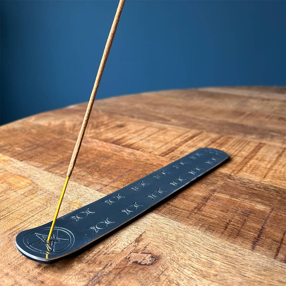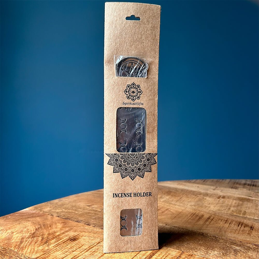 Step into your magic with the Aluminium Incense Holder Triple Moon & Pentagram. Crafted from durable aluminium and engraved with two of the most powerful symbols in modern witchcraft, this incense holder brings intention, protection, and lunar energy into every ritual.