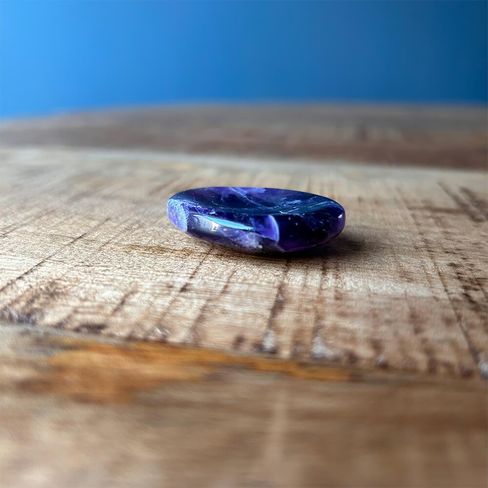 The Amethyst Worry Stone is a natural tool for relaxation and stress relief. Polished into a smooth oval with a thumb-sized indentation, this gemstone fits perfectly in your hand, inviting calm through gentle touch and repetition.
