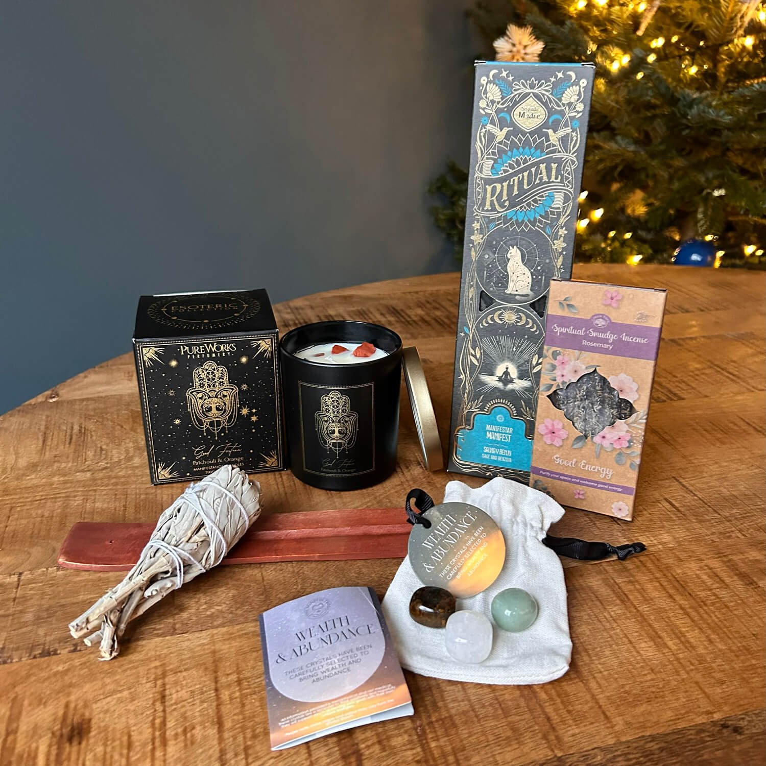 The Good Fortune kit is a powerful abundance and prosperity gift set designed to attract luck, success and positive opportunities. With wealth crystals, manifest incense, rosemary smudge and a bright patchouli orange candle, this kit helps align your energy with growth and good fortune.