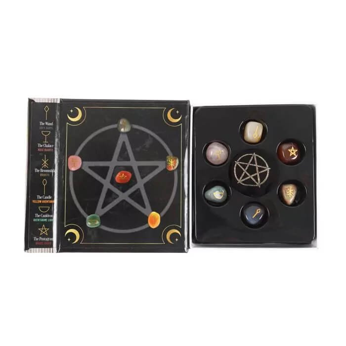 Inside, you’ll find six sacred stones, each aligned with a traditional tool of witchcraft: