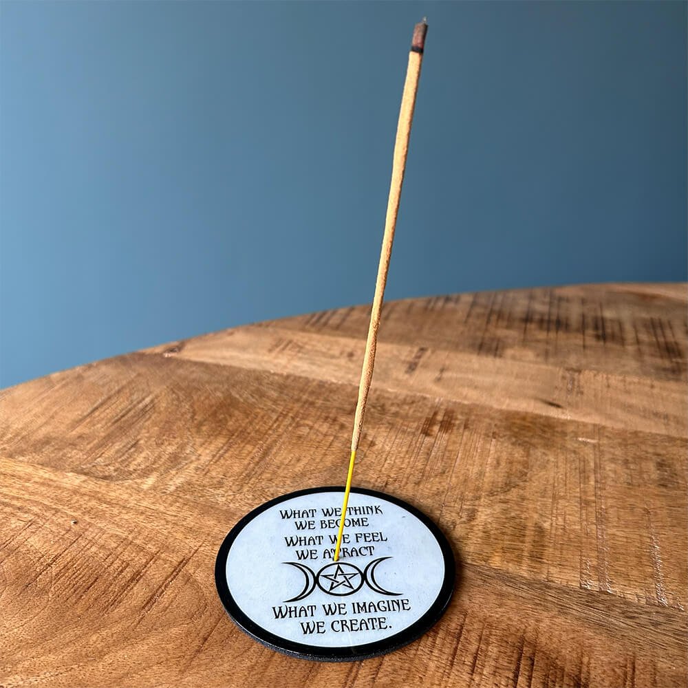 Made from sturdy, easy to clean metal, this coaster and incense holder is built for daily ritual use. The bold black and white lunar design makes it a beautiful focal point on any altar or shelf.